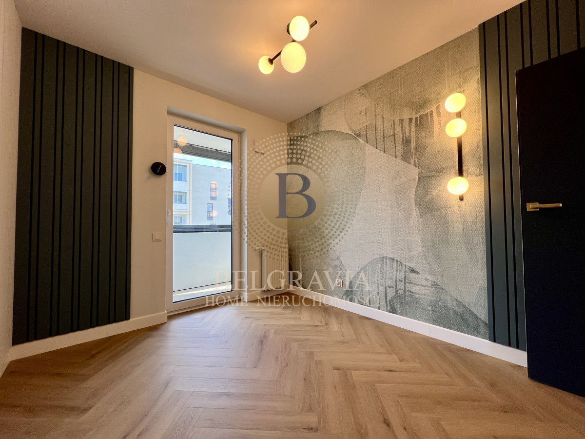 Apartament o nowoczesnym układzie i wysokim standardzie wykończenia, gotowy do zamieszkania od zaraz. Składa się z przestronnego, jasnego salonu połączonego z aneksem kuchennym, dwóch sypialni z wyjściem na balkon, dodatkowego pokoju do pracy lub jako gabinet, oraz dwóch łazienek - każda z innym charakterem i funkcjonalnością.