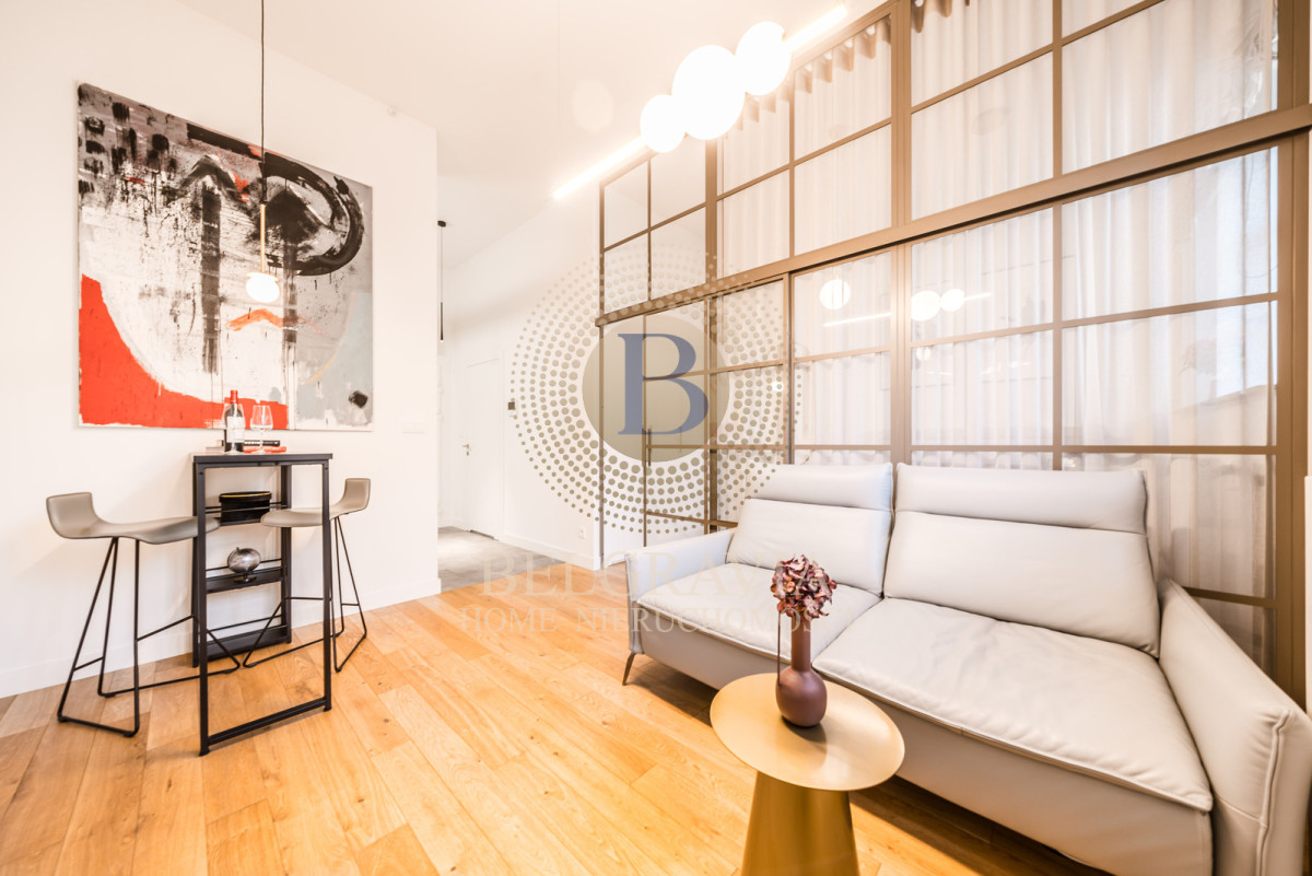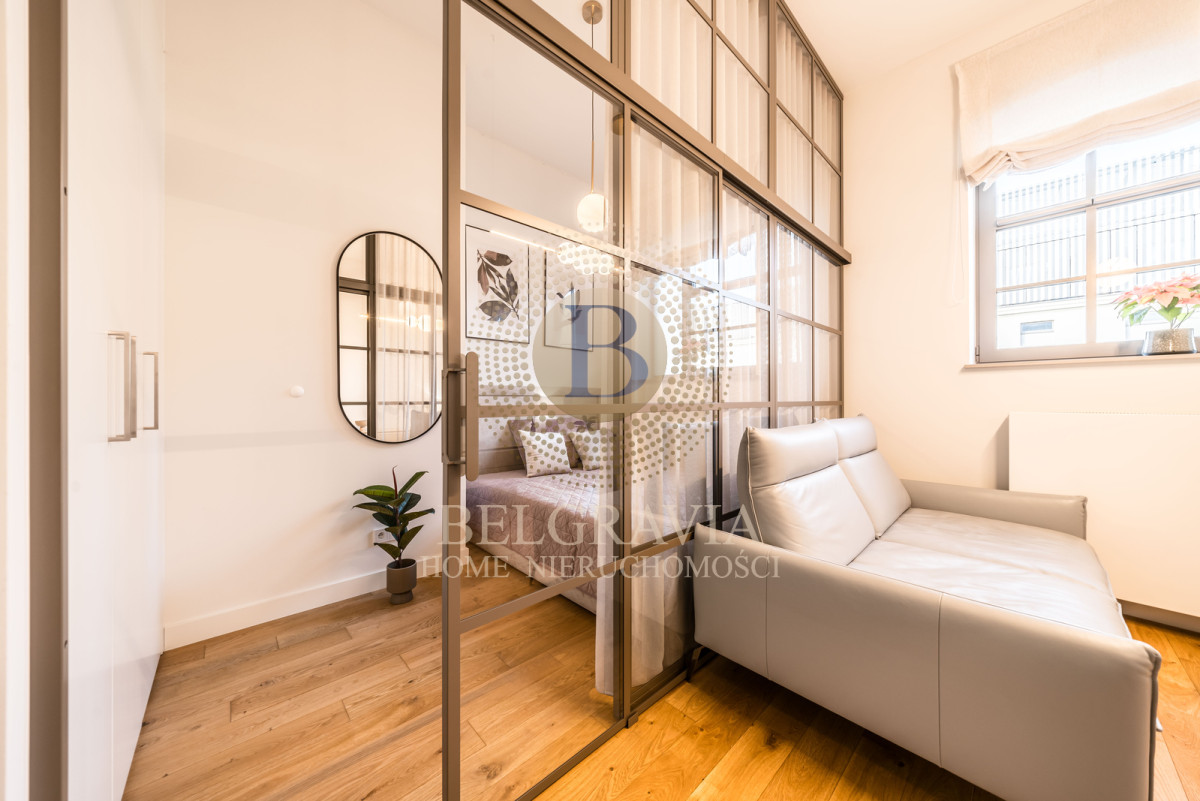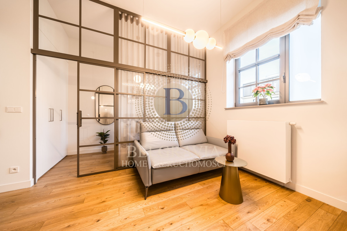 The high quality of finishing materials and well thought out and executed interior contribute to the high comfort of the living space. The apartment is quietly and intimately located on the side of the inner courtyard.