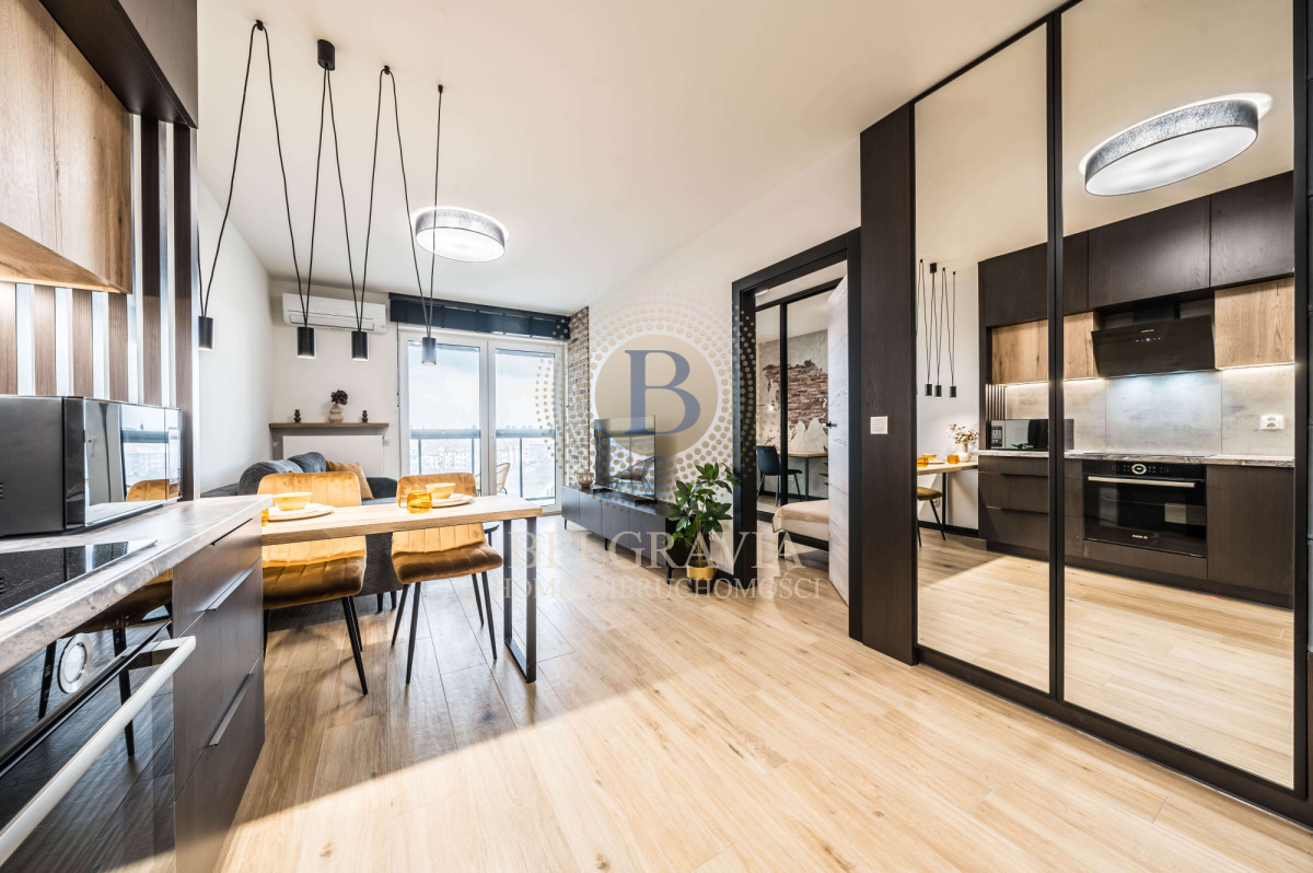 Do wynajęcia nowoczesny, w pełni umeblowany i urządzony apartament w budynku będącym częścią kompleksu Wrocławskiego Browaru. Sercem mieszkania jest otwarta strefa dzienna imponująca niezwykłą spójnością i zróżnicowanymi fakturami. Apartament jest również bardzo przytulny a to zasługa użytej kolorystyki a także odpowiednio zaprojektowanego oświetlenia.