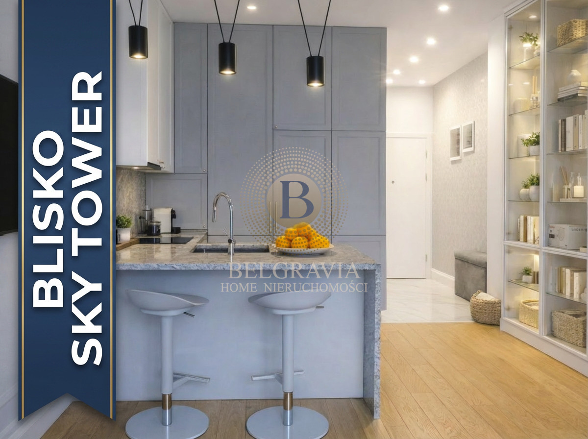 Do wynajęcia komfortowe 2-pokojowe mieszkanie zlokalizowane w sąsiedztwie Sky Tower, zaprojektowane z dbałością o każdy detal i wykończone materiałami najwyższej jakości.