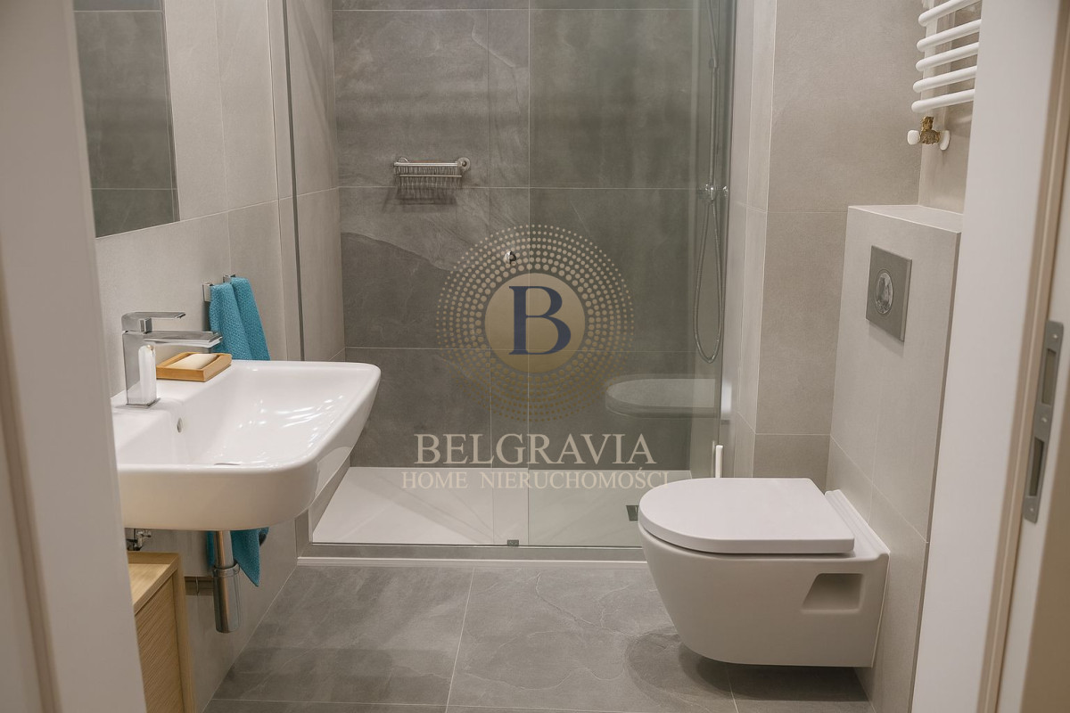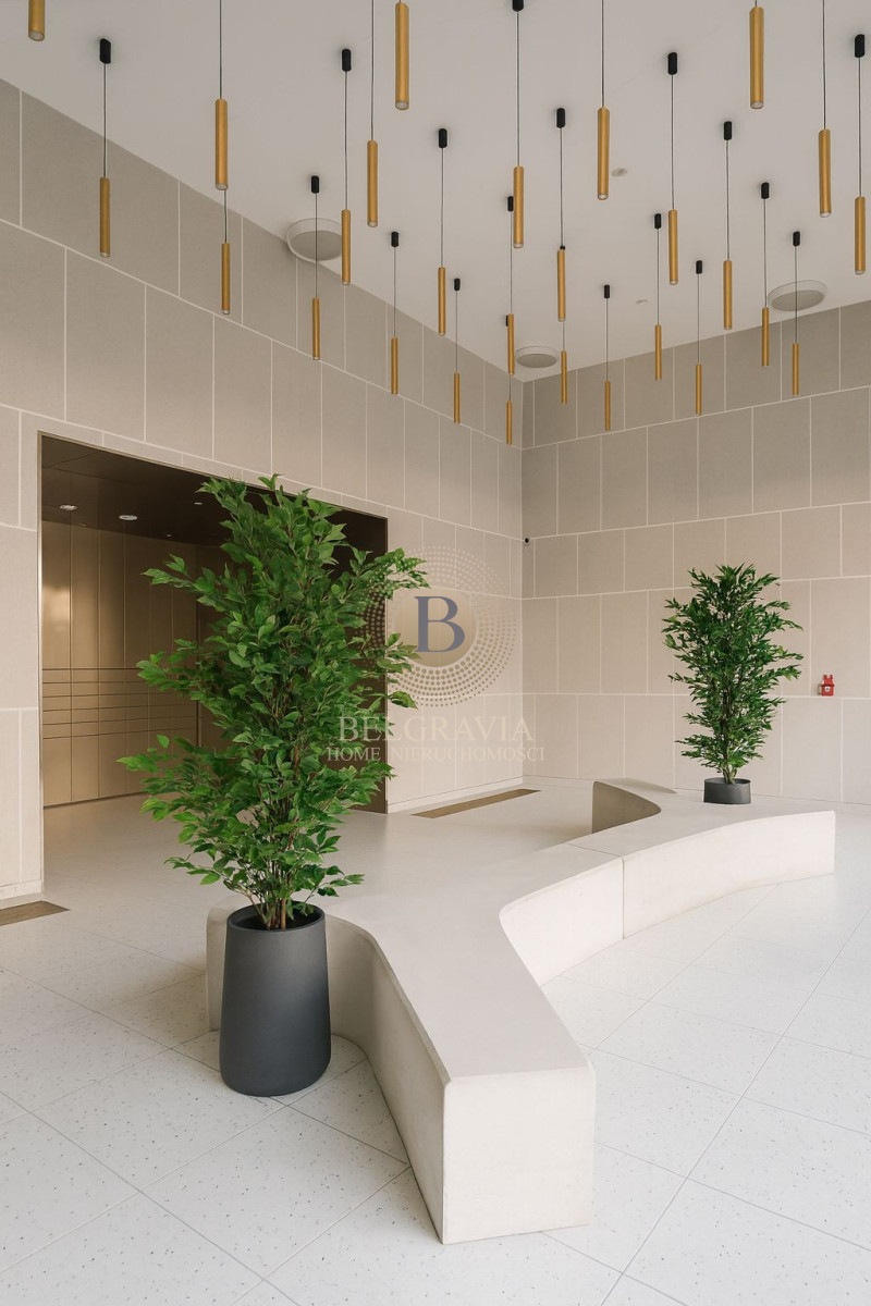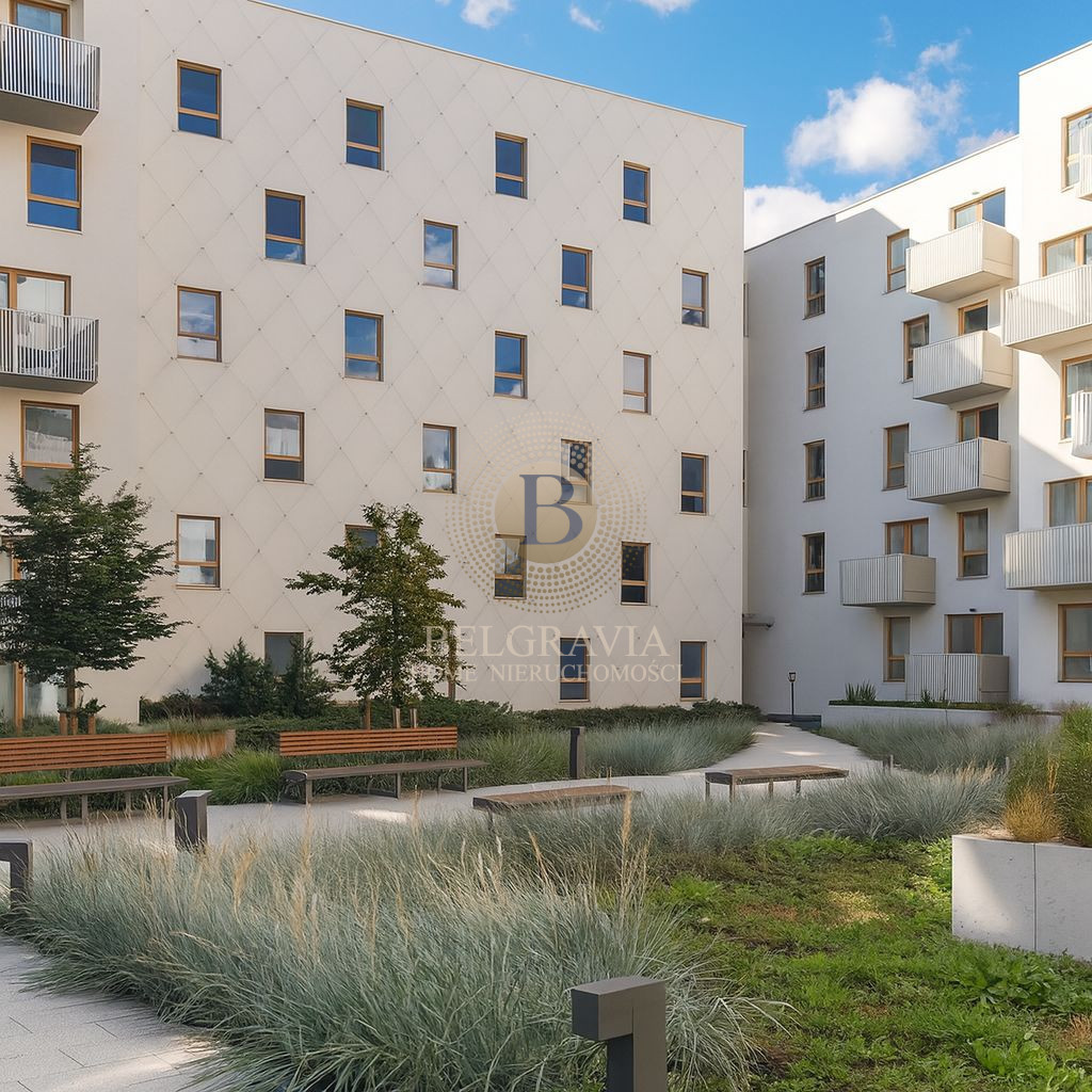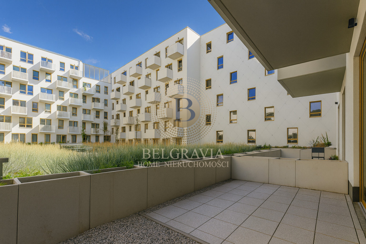 Mieszkanie wyróżnia się przestronnym, 14-metrowym tarasem z widokiem na zielone patio, który tworzy idealną przestrzeń do relaksu na świeżym powietrzu. Komfort codziennego życia podnosi klimatyzacja, a także funkcjonalna garderoba, zapewniająca dodatkowe miejsce do przechowywania. Dla wygody przyszłego najemcy dostępne jest również miejsce parkingowe w garażu podziemnym.