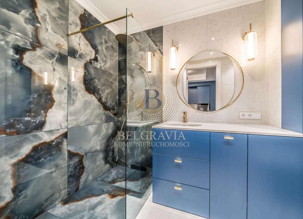 • Nowoczesnej łazienki z prysznicem walk-in wykończonej ze szlachetnych materiałów