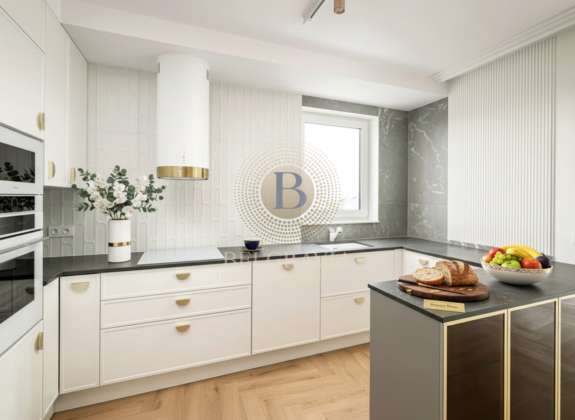 • W pełni wyposażona kuchnia: lodówka, zmywarka, piekarnik, okap, płyta indukcyjna