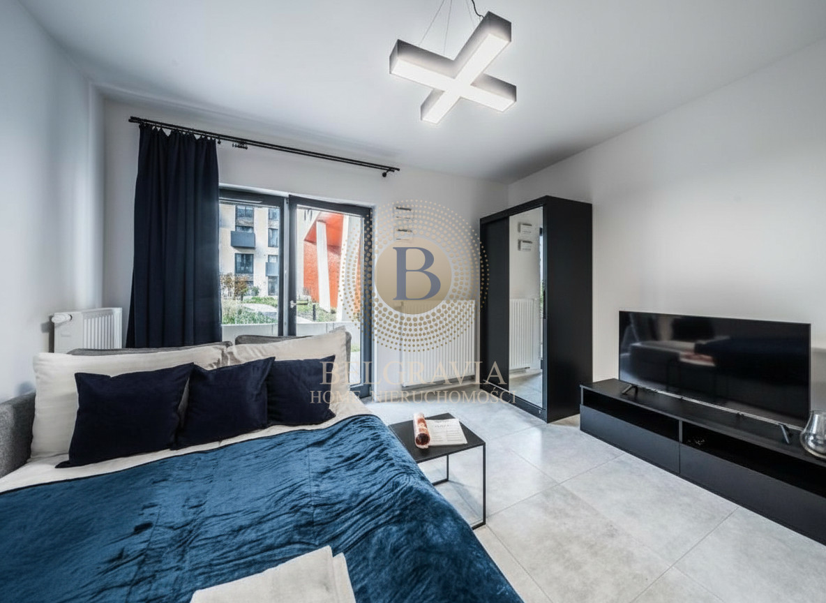 Idealnie nadaje się jako lokum dla studentów, singli lub młodych ludzi rozpoczynających swoją karierę w dużym mieście. Nieruchomość położona jest w nowoczesnym budynku apartamentowym, który posiada: Recepcję, Ochronę, Strefę SPA (Siłownia, Strefa saun), Rowerownie, Windę, Stację Ładowania Aut, Parking dla Gości
