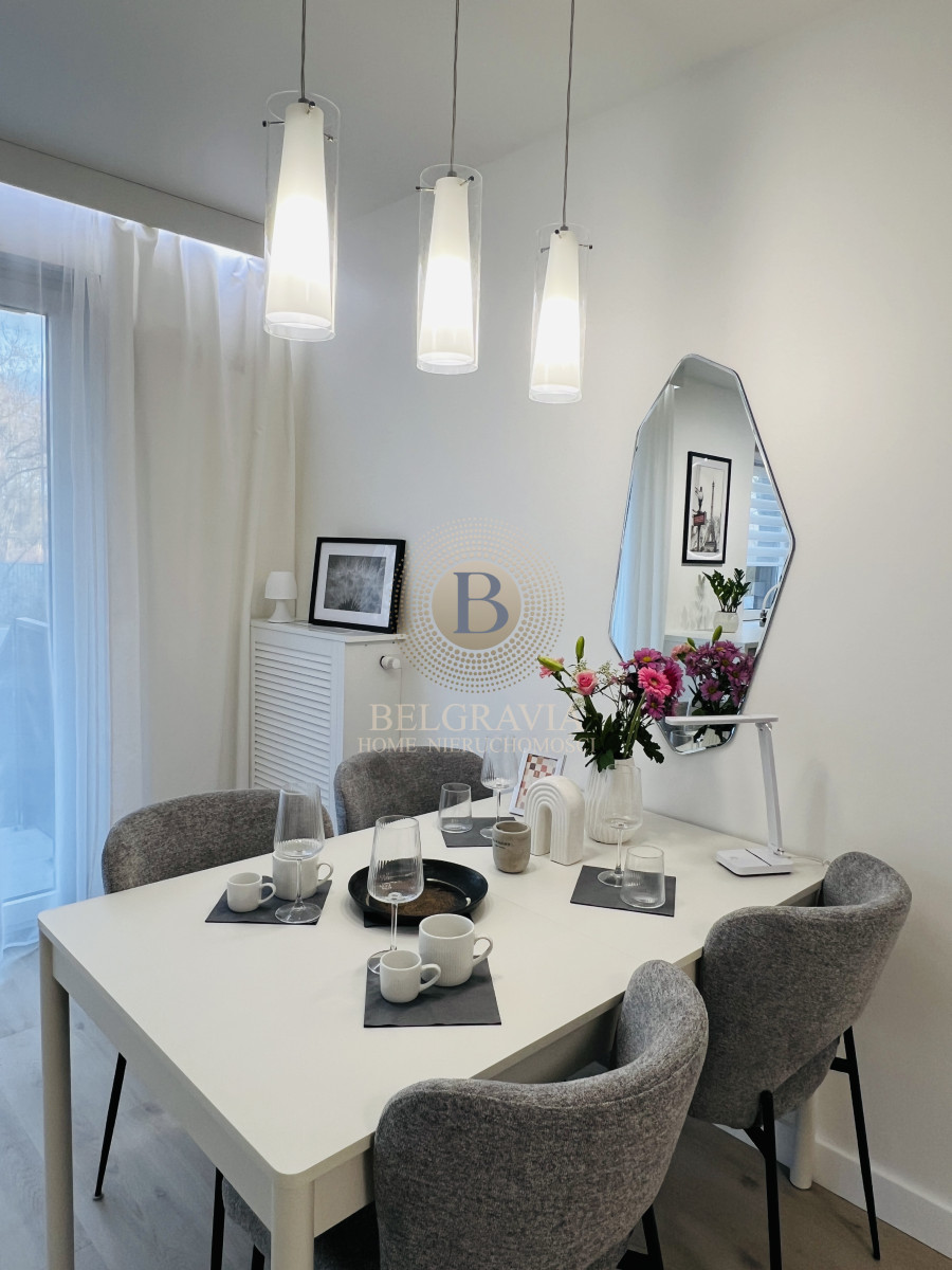 Wyposażenie: Kompletnie umeblowane, AGD, funkcjonalne szafy, eleganckie detale.