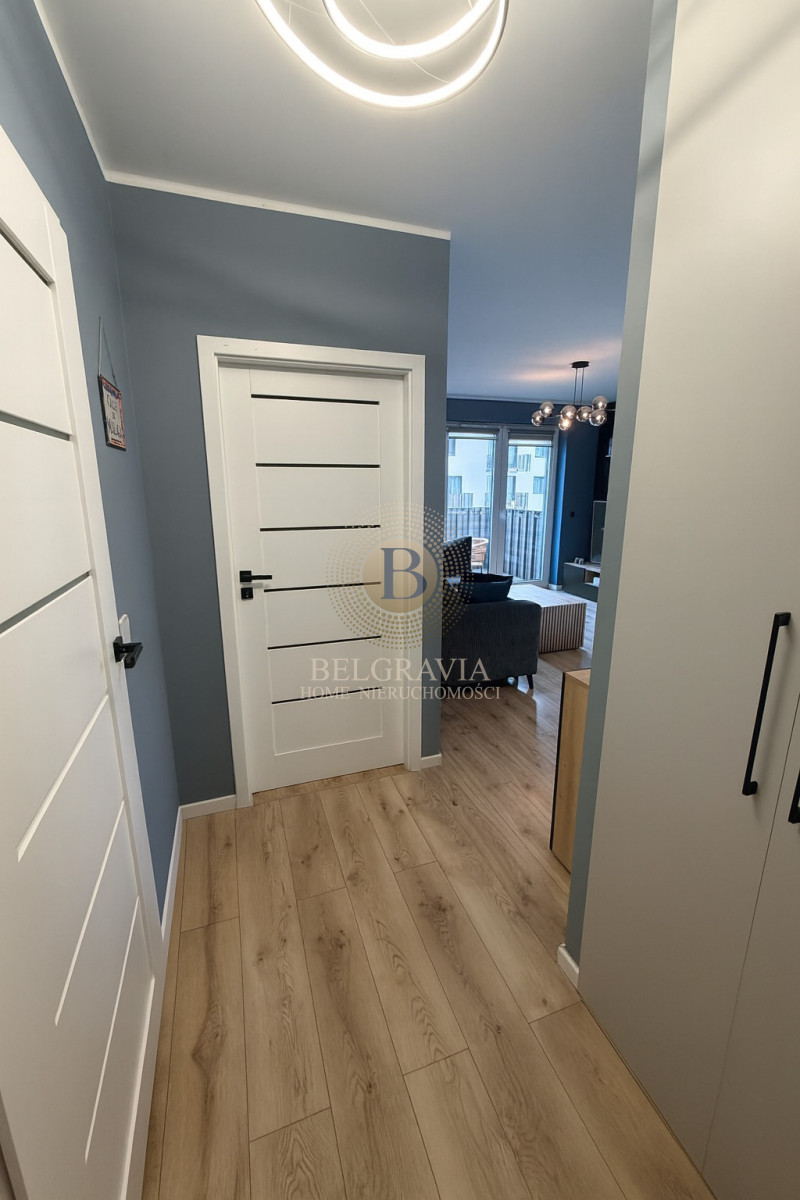 - Przedpokój z dużą, pojemną szafą w zabudowie, zapewniającą świetną organizację przestrzeni.