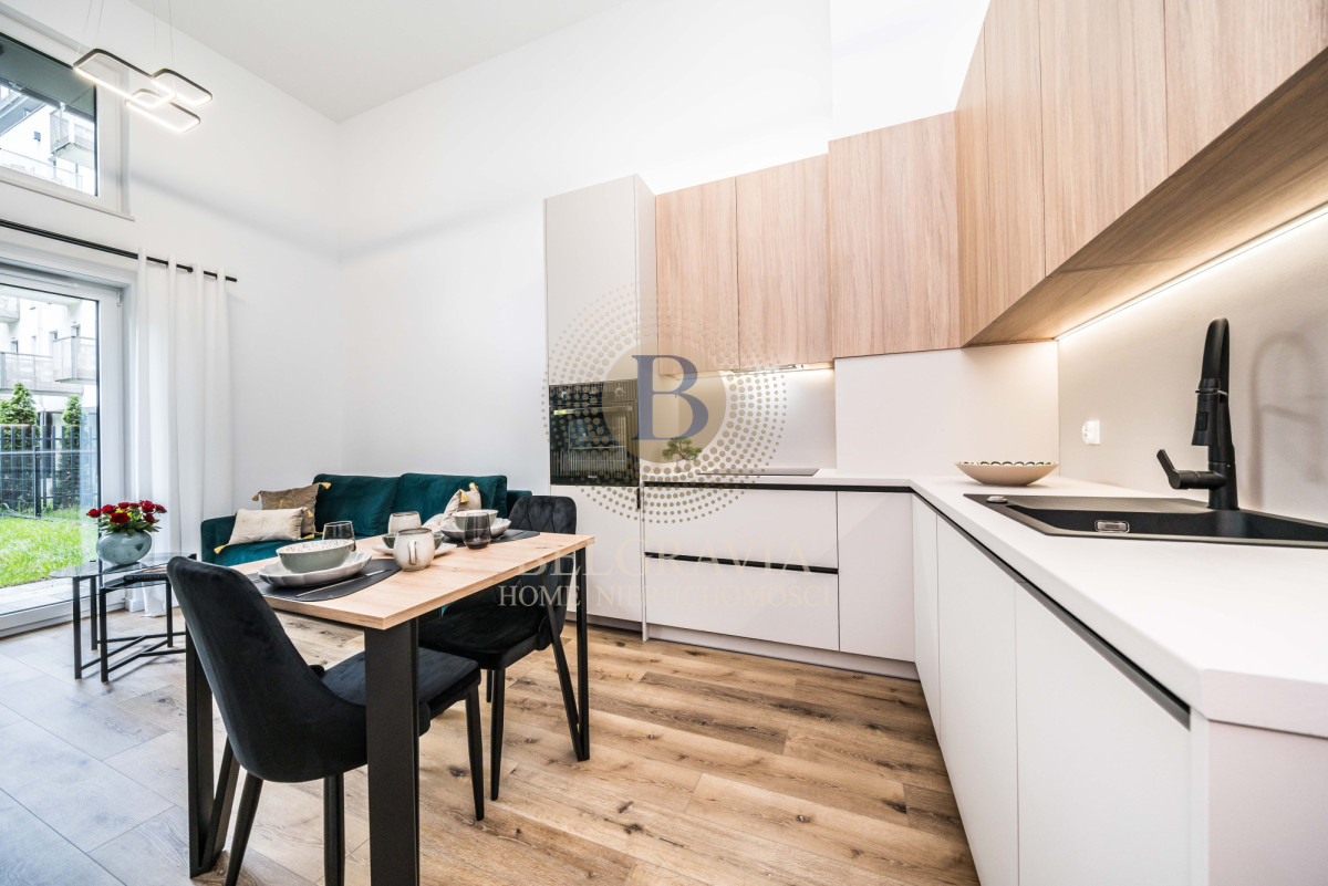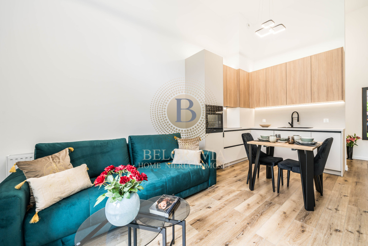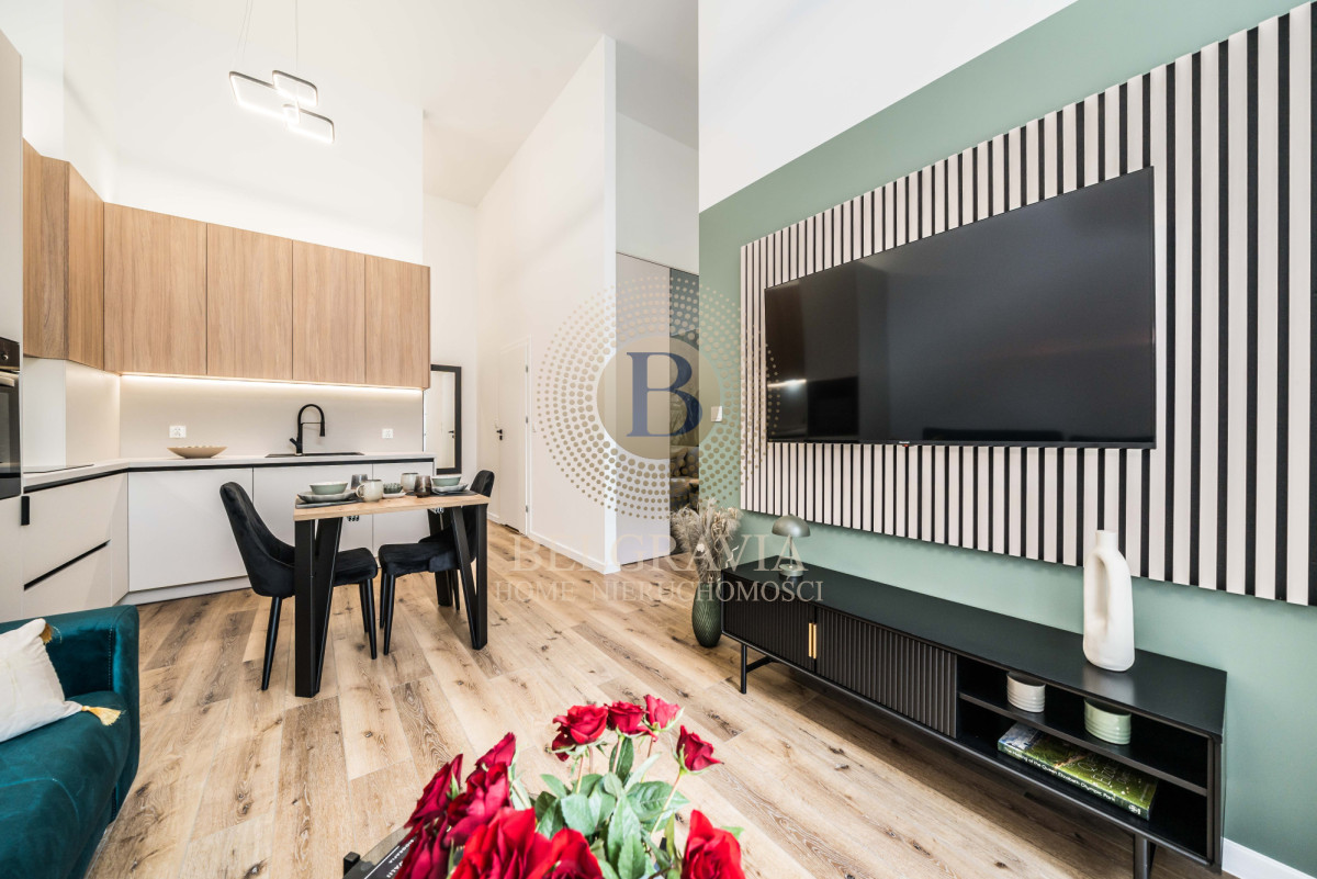Wyposażenie: Kompletnie umeblowane, AGD, funkcjonalne szafy, eleganckie detale.