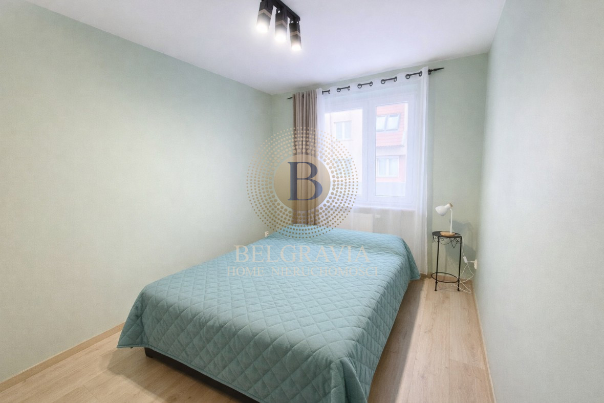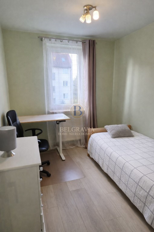 - Drugi pokój z pojedynczym łóżkiem, biurkiem, komodą i szafą - doskonale sprawdzi się jako gabinet do pracy zdalnej, pokój gościnny lub druga sypialnia.